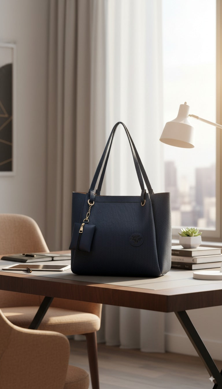 📏 الحجم: كبير، يتسع للوثائق، الحاسوب اللوحي، المستلزمات اليومية.